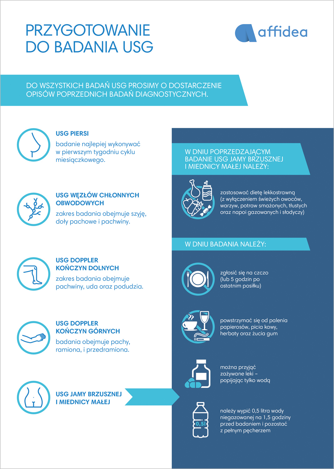 • 3 godziny przed badaniem należy powstrzymać się od jedzenia i picia. Można pić jedynie wodę niegazowaną.